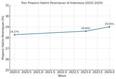 Gambar 1. Tren proporsi hakim perempuan di Indonesia periode 2020–2024.