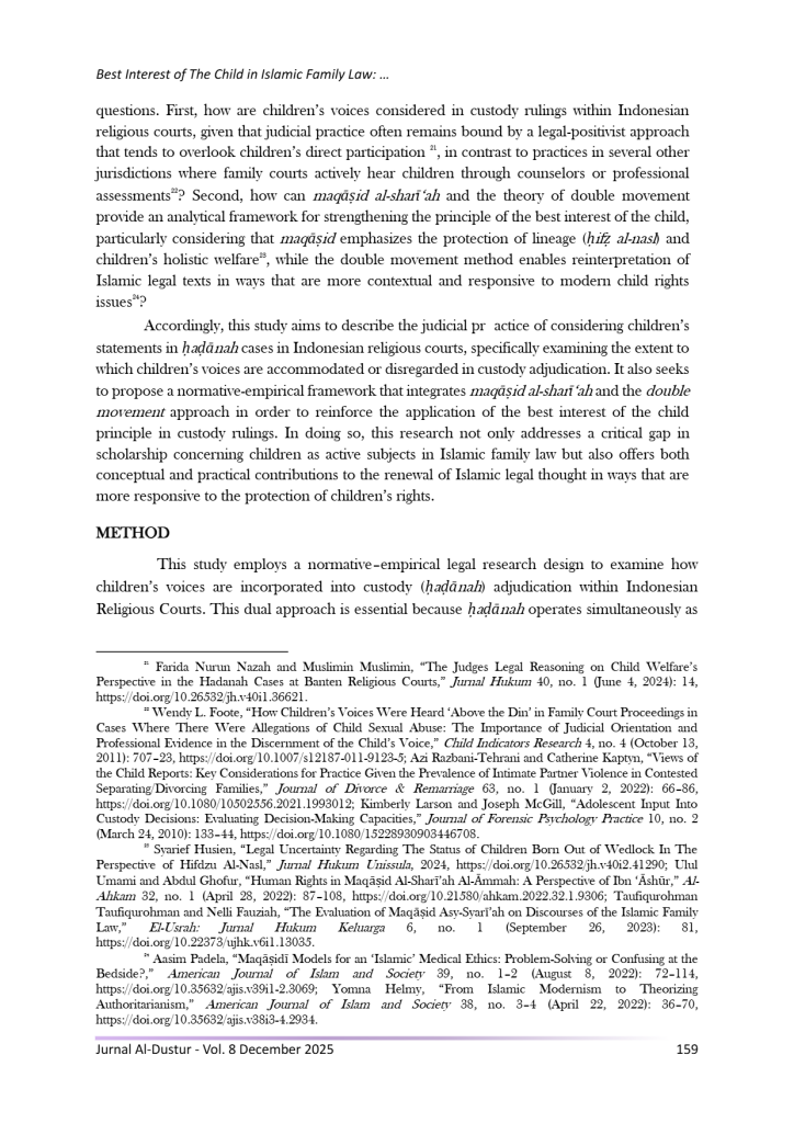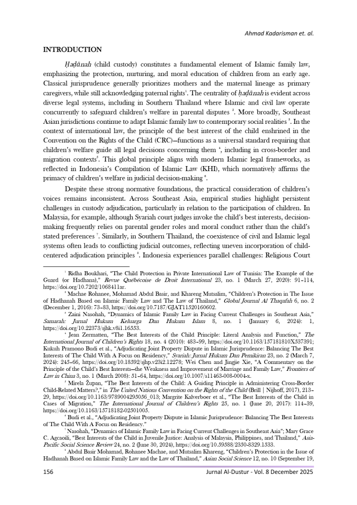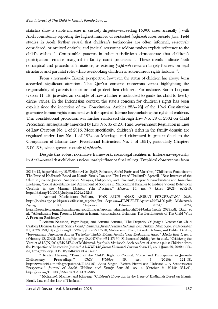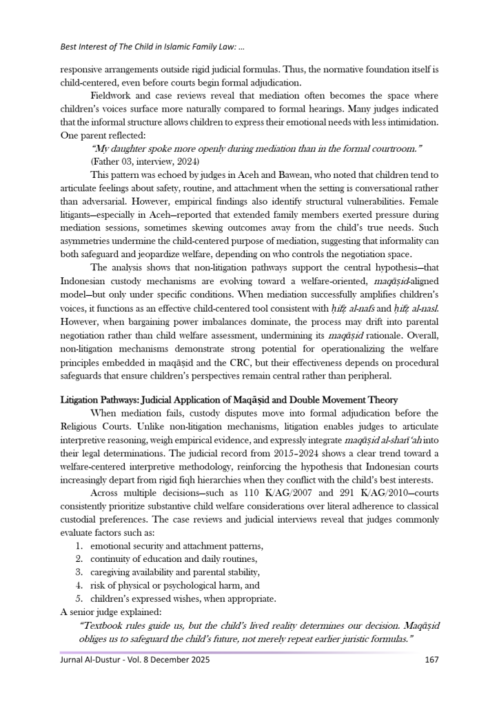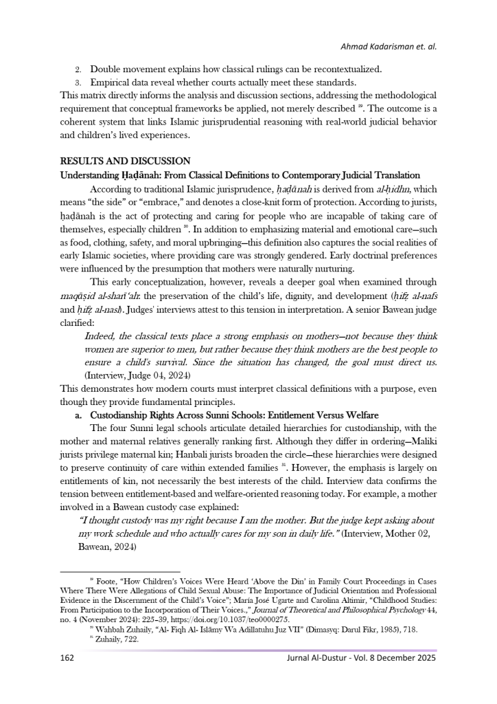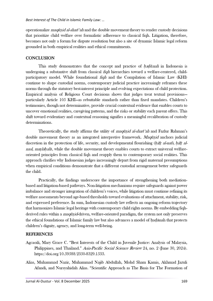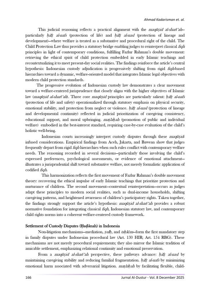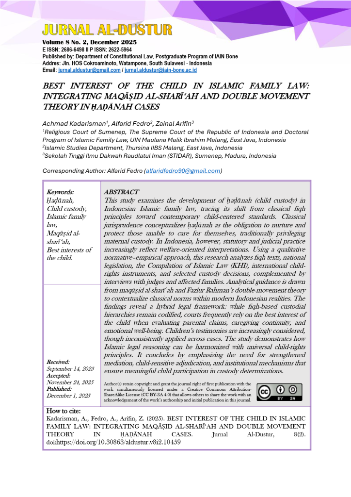 BEST INTEREST OF THE CHILD IN ISLAMIC FAMILY LAW: INTEGRATING MAQĀṢID AL-SHARĪ‘AH AND DOUBLE MOVEMENT THEORY IN ḤAḌĀNAH CASES 2 Desember 2025 oleh marwan syah