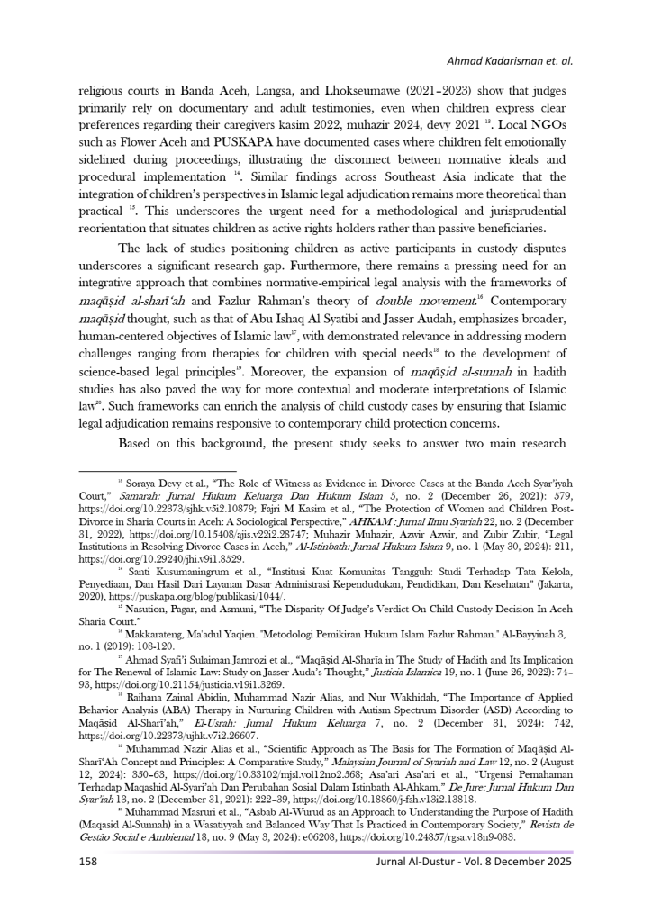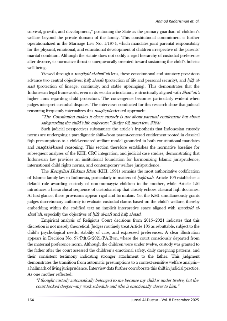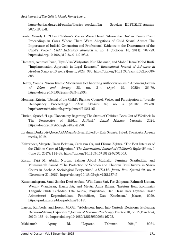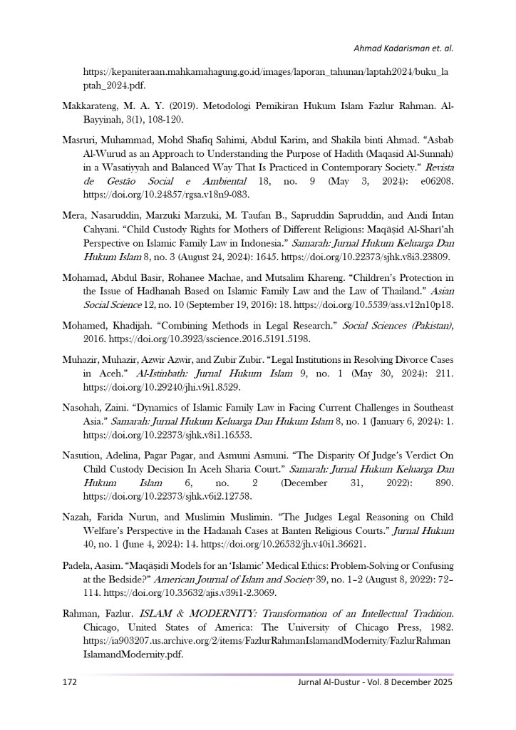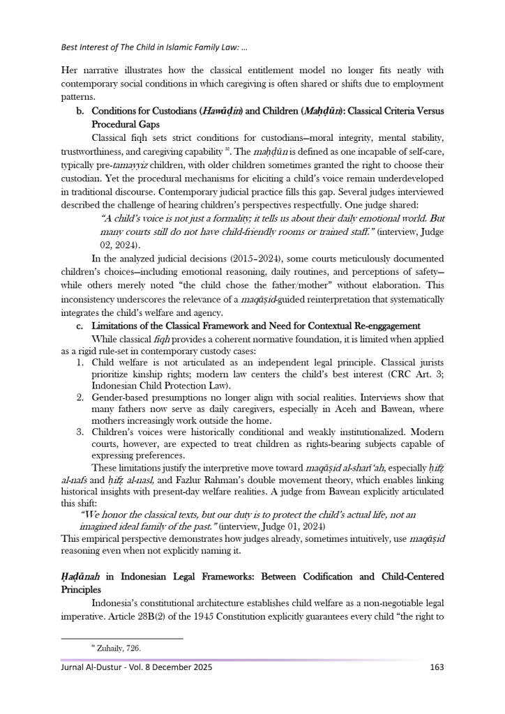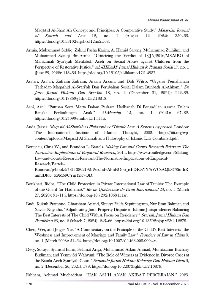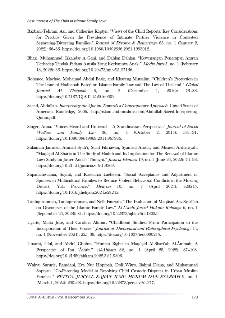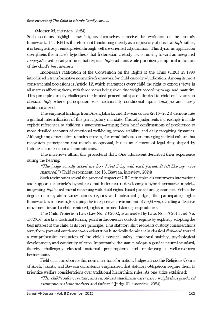 BEST INTEREST OF THE CHILD IN ISLAMIC FAMILY LAW: INTEGRATING MAQĀṢID AL-SHARĪ‘AH AND DOUBLE MOVEMENT THEORY IN ḤAḌĀNAH CASES 2 Desember 2025 oleh marwan syah