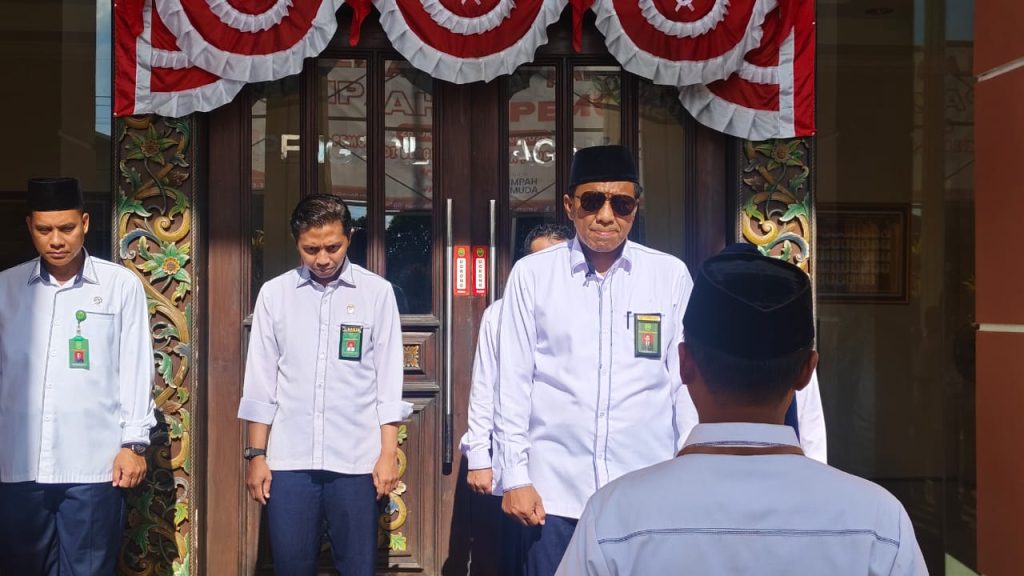 pa-sumenep.go.id – Pengadilan Agama (PA) Sumenep kembali melaksanakan kegiatan apel pagi di halaman depan kantor pada Senin (03/11/2025). Kegiatan rutin setiap awal pekan ini diikuti oleh seluruh aparatur, baik dari unsur hakim, kepaniteraan, maupun kesekretariatan. Kali ini, Ketua PA Sumenep, Moh. Jatim, S.Ag., M.H.I., bertindak sebagai pembina apel.