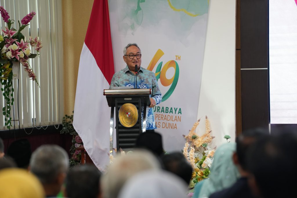 Dalam sambutannya, Ketua PTA Surabaya, Dr. H. Zulkarnain, S.H., M.H., menyampaikan bahwa usia 49 tahun merupakan fase kematangan institusi untuk melangkah lebih progresif menuju peradilan berkelas dunia. Beliau juga memaparkan berbagai rangkaian kegiatan Milad yang telah dilaksanakan, mulai dari kegiatan keagamaan, sosial, olahraga, literasi hukum, hingga penguatan kerja sama dengan berbagai pemangku kepentingan. Seluruh rangkaian tersebut menjadi wujud nyata kontribusi PTA Surabaya bagi masyarakat dan dunia peradilan.