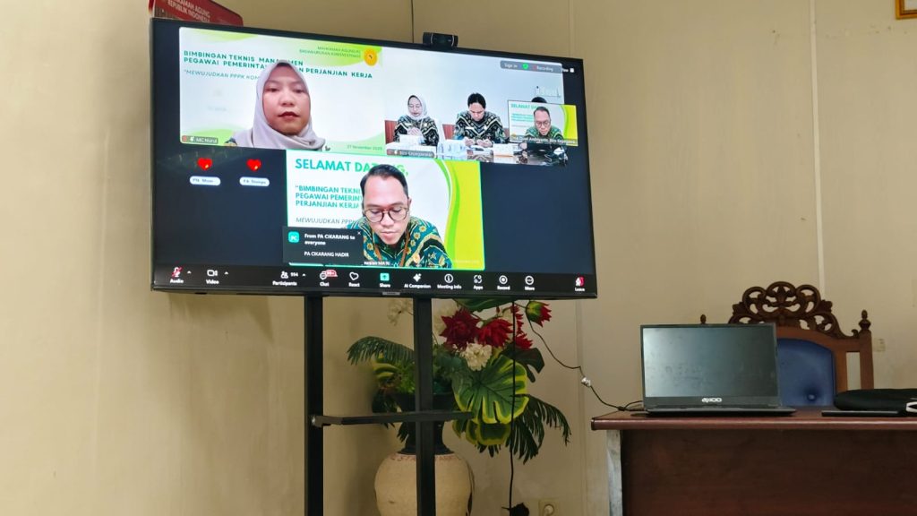 pa-sumenep.go.id – PPPK Pengadilan Agama Sumenep mengikuti Bimbingan Teknis Manajemen PPPK secara daring di ruang pertemuan pada Kamis pagi (27/11/2025). Kegiatan ini diselenggarakan untuk meningkatkan pemahaman aparatur mengenai pengelolaan Manajemen PPPK sesuai ketentuan PP Nomor 49 Tahun 2018. Bimtek ini penting sebagai langkah awal memastikan seluruh aparatur memahami aturan dasar manajemen PPPK.