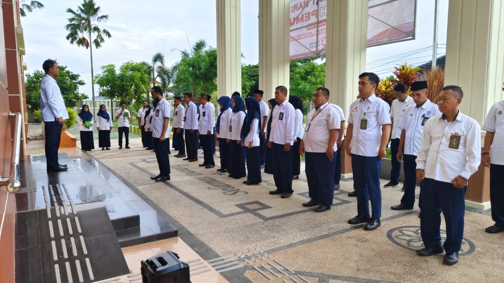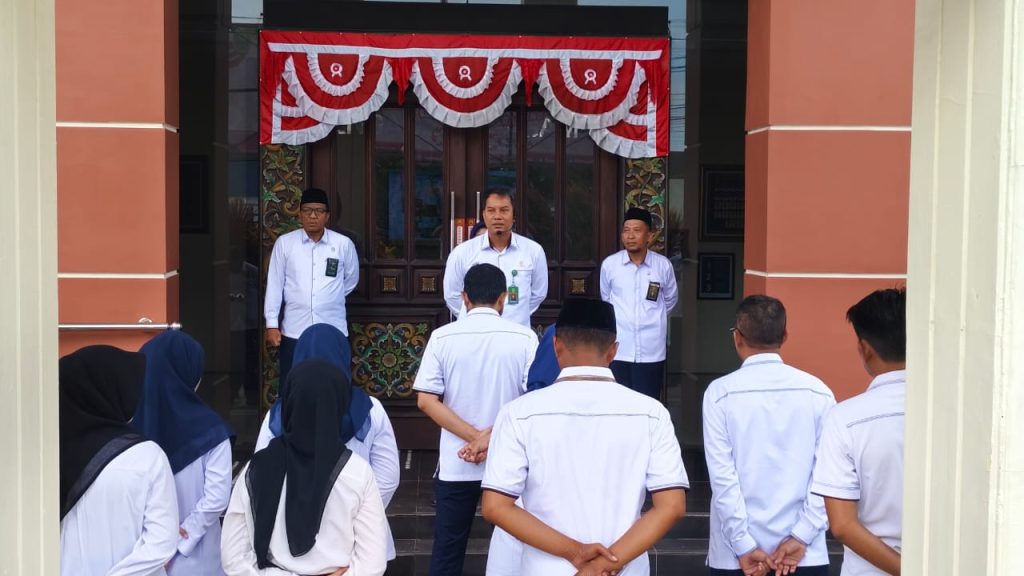 pa-sumenep.go.id – Pengadilan Agama Sumenep melaksanakan kegiatan apel pagi di halaman depan kantor pada Senin (27/10/2025). Kegiatan ini diikuti oleh seluruh aparatur Pengadilan Agama Sumenep dengan penuh kedisiplinan. Wakil Ketua PA Sumenep, Muhamad Imron, S.Ag., M.H. bertindak sebagai pembina apel.