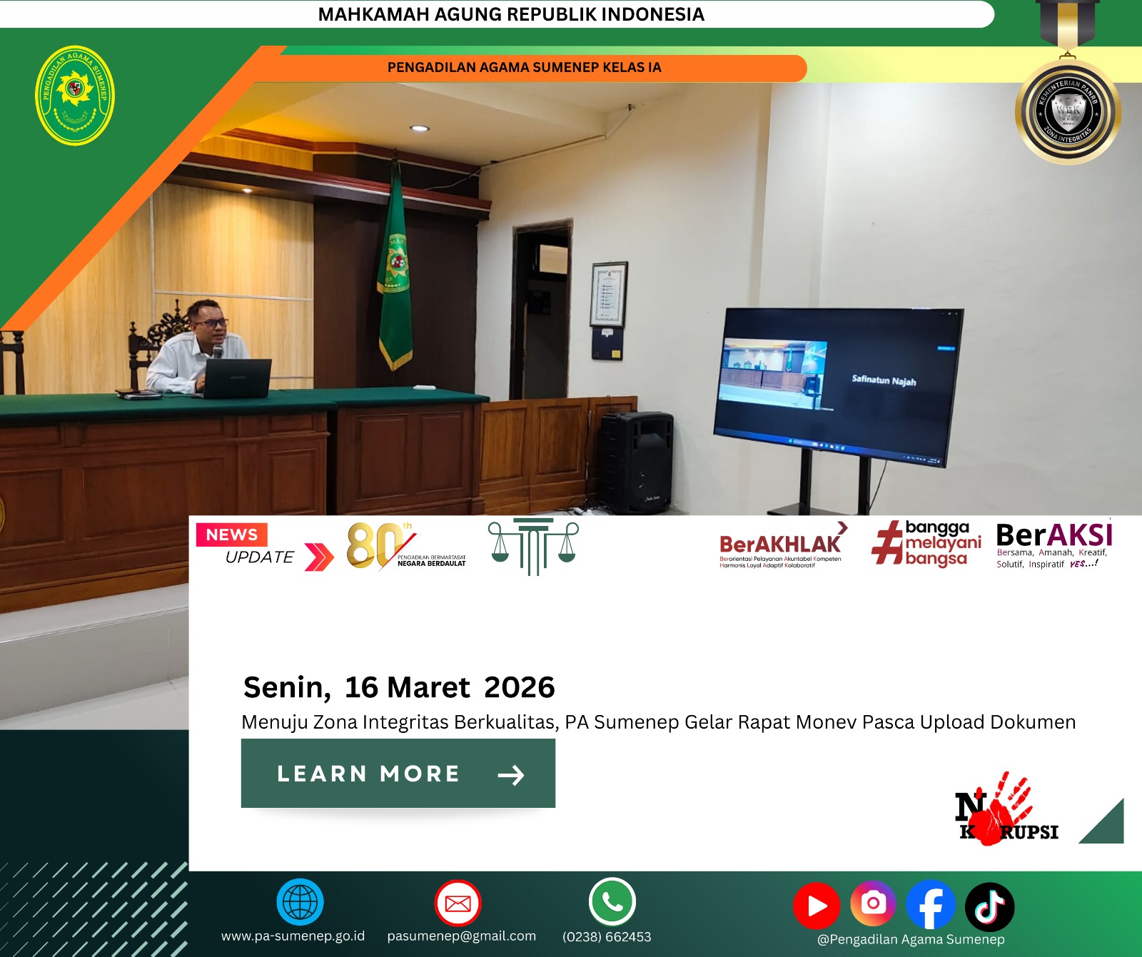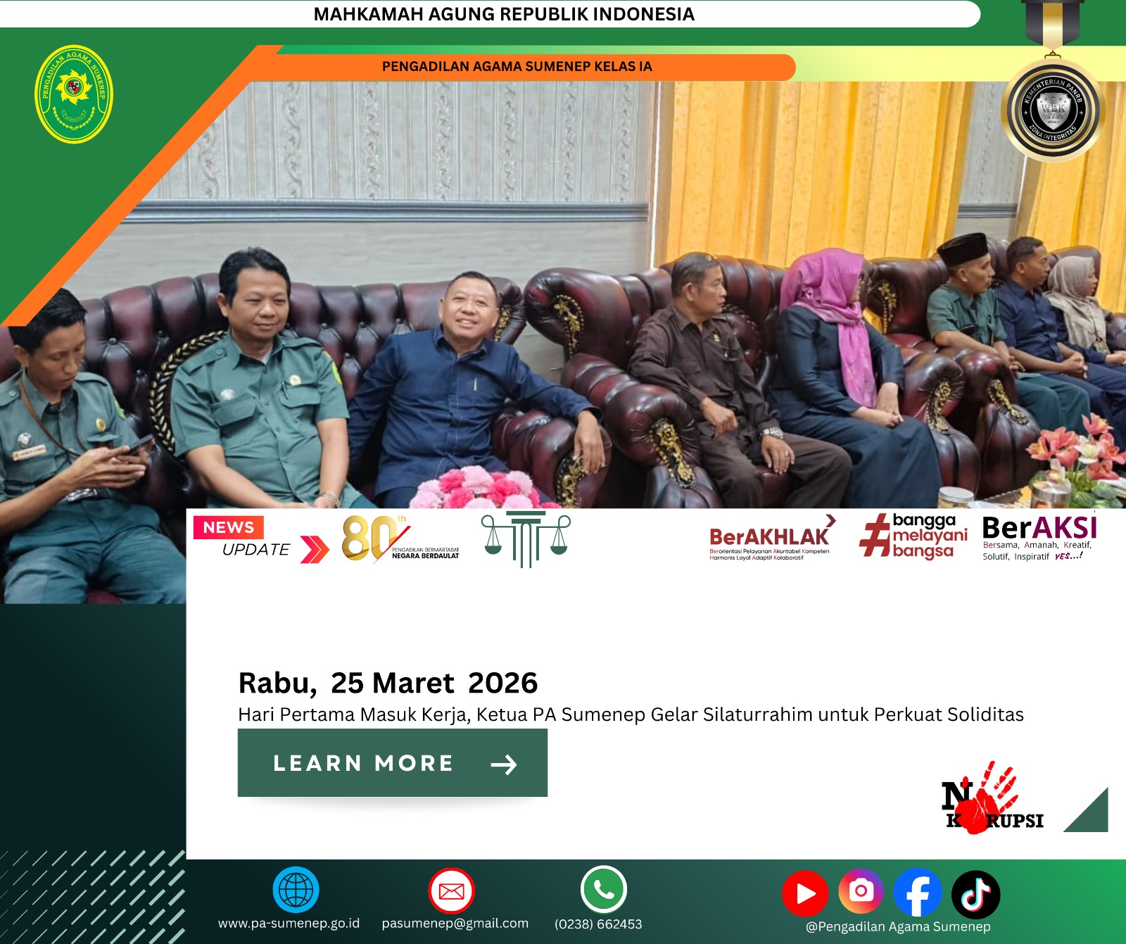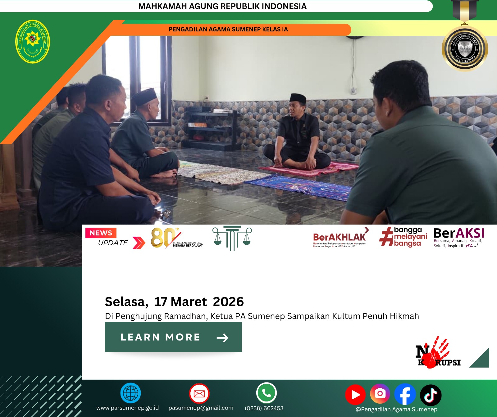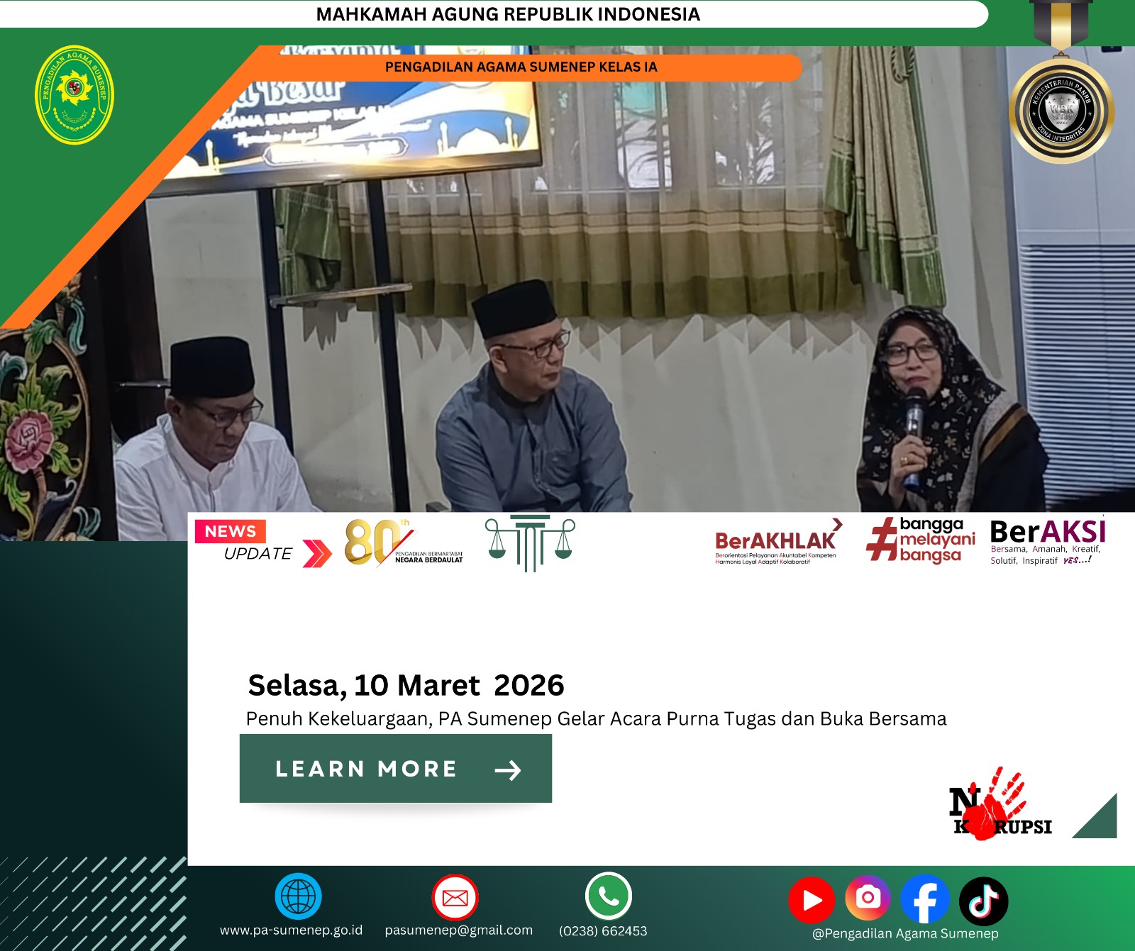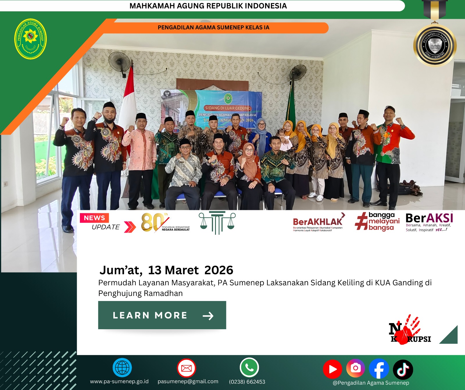 pa-sumenep.go.id – Pengadilan Agama (PA) Sumenep kembali menggelar sidang keliling di Yayasan Pendidikan Islam KH. A. Rasyidi, Desa Duko, Kecamatan Rubaru, pada Senin, 30 Maret 2026. Kegiatan ini menjadi bagian dari komitmen untuk mendekatkan layanan hukum kepada masyarakat, khususnya pasca Lebaran. Antusiasme warga terlihat tinggi sejak pagi hari, menunjukkan bahwa kebutuhan akan akses keadilan semakin … Baca Selengkapnya