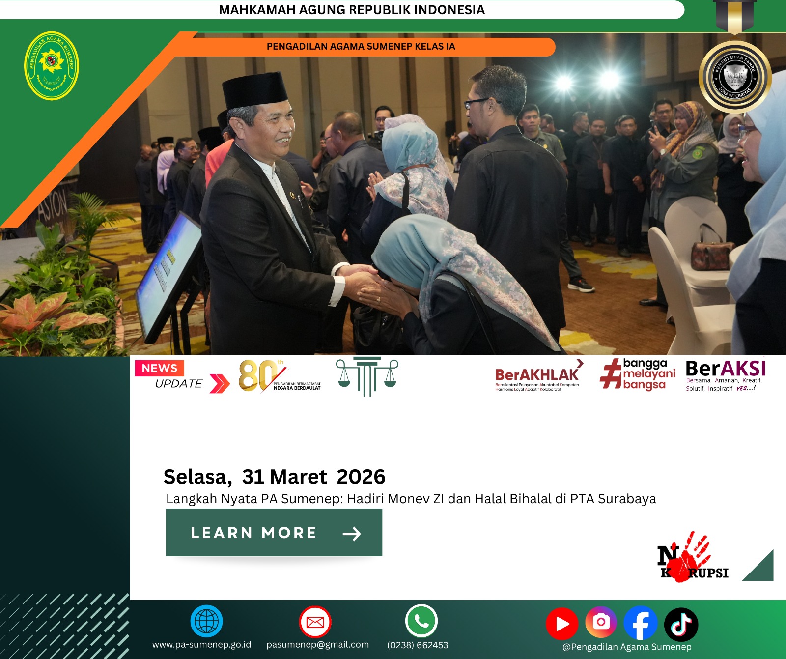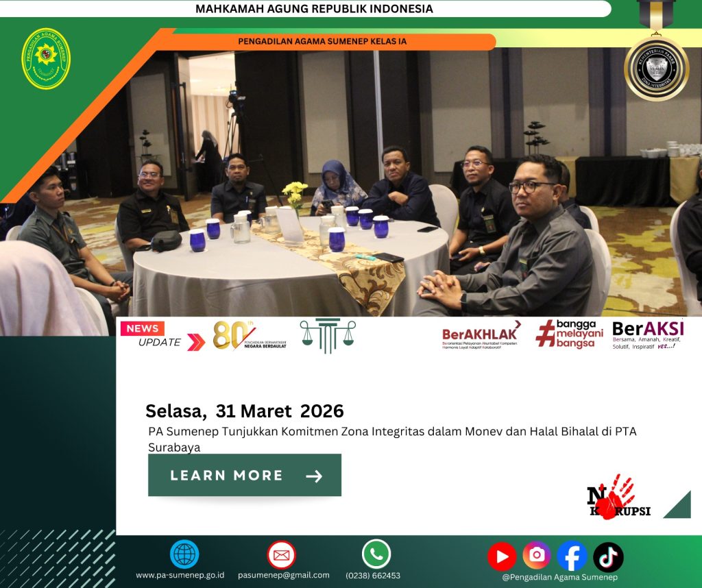 pa-sumenep.go.id – Pengadilan Agama (PA) Sumenep menunjukkan komitmennya dalam meningkatkan kualitas pelayanan publik dengan menghadiri kegiatan Monitoring dan Evaluasi (Monev) Zona Integritas (ZI) yang diselenggarakan di lingkungan PTA Surabaya. Acara ini berlangsung pada Selasa, 31 Maret 2026, di Kabupaten Gresik dengan suasana yang penuh semangat kolaborasi. Kehadiran PA Sumenep tidak hanya sebagai bentuk evaluasi kinerja, tetapi juga sebagai langkah mempererat hubungan kelembagaan.