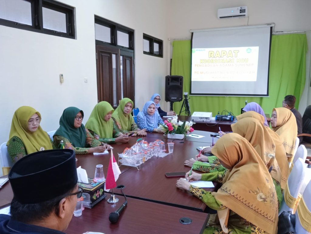 pa-sumenep.go.id – Pengadilan Agama Sumenep menggelar rapat koordinasi bersama Pimpinan Cabang Muslimat NU dan Pimpinan Daerah Aisyiyah pada siang hari ini, Selasa (21/10/2025), di ruang media center PA Sumenep. Rapat ini dipimpin langsung oleh Ketua PA Sumenep, Moh. Jatim, S.Ag., M.H.I., dan dihadiri oleh Wakil Ketua, Panitera, Sekretaris, serta Panmud Hukum PA Sumenep. Pertemuan tersebut merupakan langkah awal menjalin sinergi antar-lembaga dalam meningkatkan kesadaran hukum keluarga terhadap perempuan dan anak di Kabupaten Sumenep. “Kami menyadari bahwa peningkatan kesadaran hukum keluarga tidak bisa dilakukan sendiri, perlu dukungan dan kolaborasi lintas organisasi,” ujar Ketua PA Sumenep.