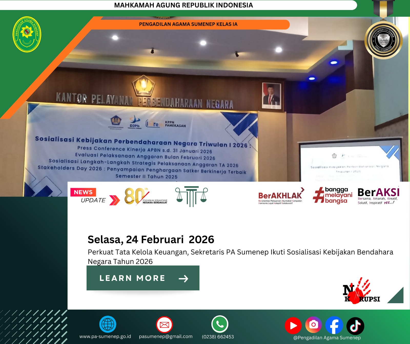 Baca Juga : PA Sumenep dan PA Kangean Sambut HATIWASDA PTA Surabaya, Perkuat Integritas dan Pengawasan Internal.