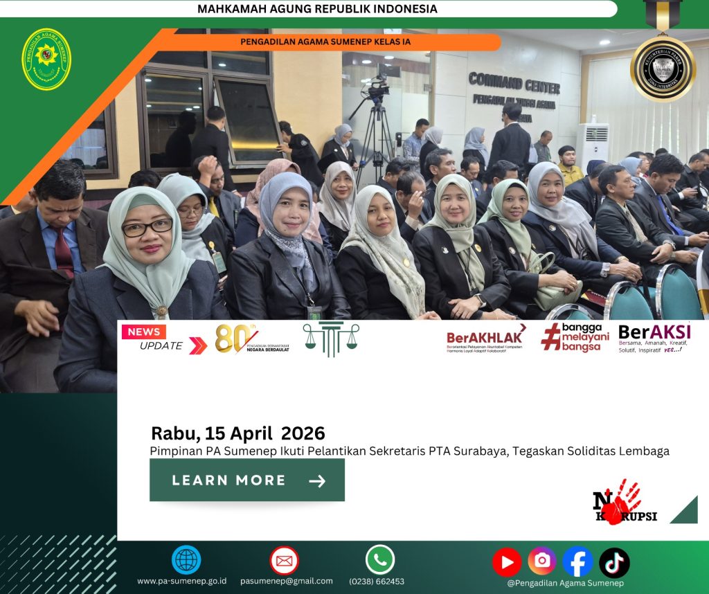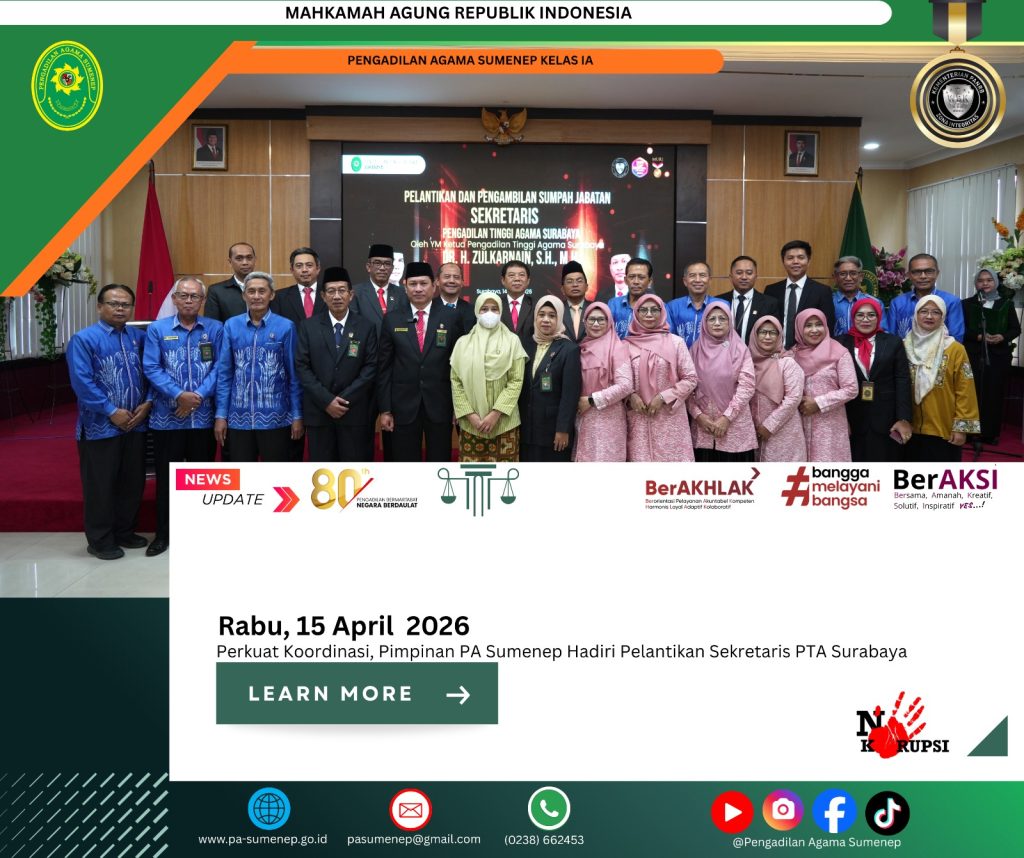 Baca Juga : Tingkatkan Kinerja, Sekretaris PA Sumenep Hadiri Rakor Sekretaris se-Wilayah PTA Semarang dan PTA Surabaya