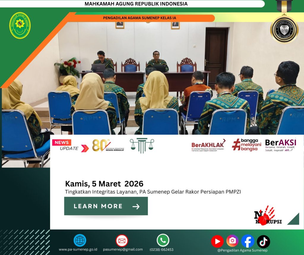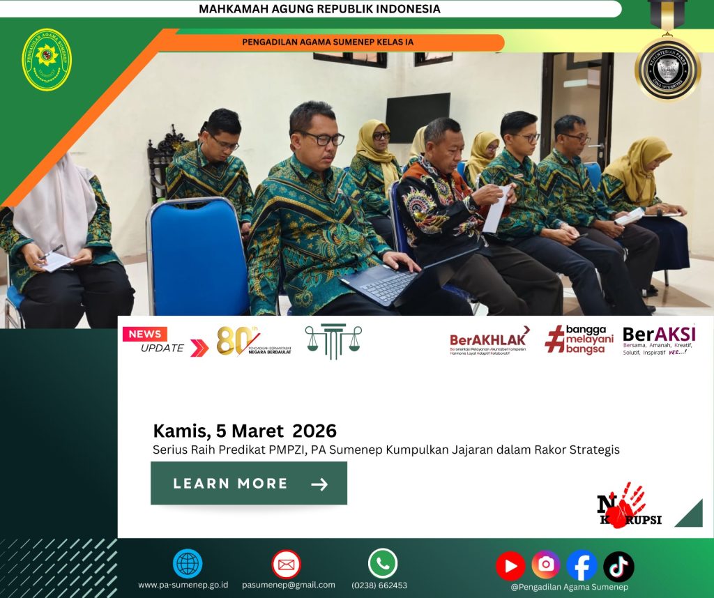 Baca Juga : Jajaran Pimpinan PA Sumenep Gelar Rakor Monev PMPZI, Matangkan Strategi Wujudkan Zona Integritas Berkelas Nasional