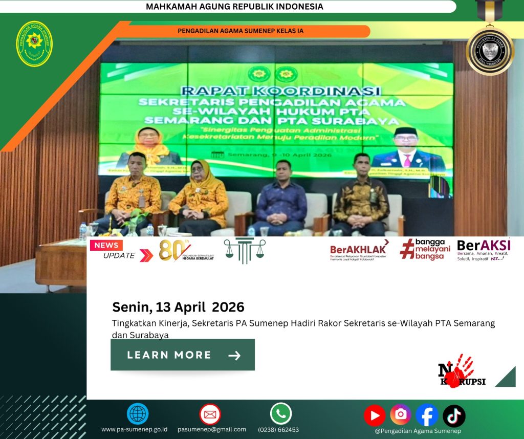 Baca Juga : Pimpinan PA Sumenep Hadir di Pelantikan Sekretaris PTA Semarang, Momentum Penguatan Kelembagaan